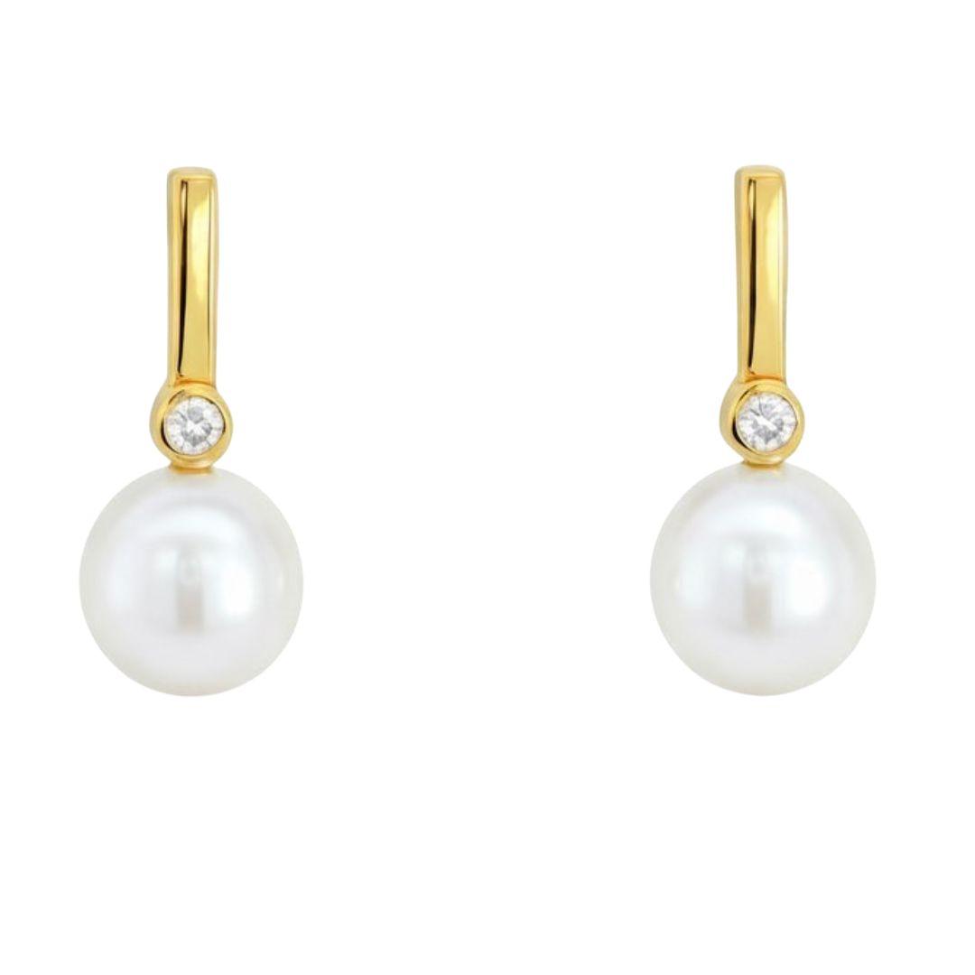 Pendientes de Oro 9K con Circonita y Perla Cultivada 6 mm
