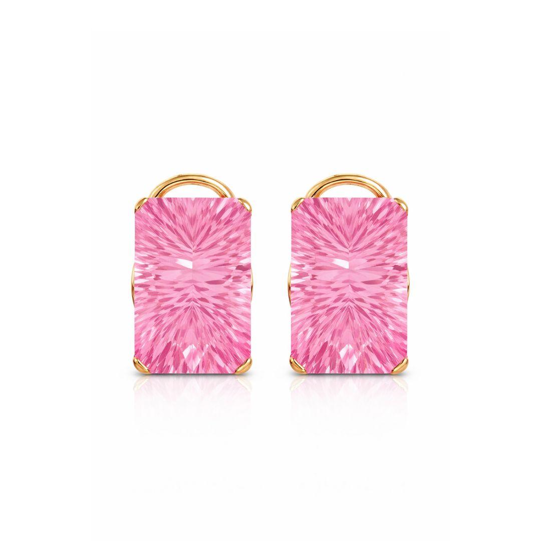 Estos pendientes en oro de 18 quilates destacan por su espectacular piedra millenium en color rosa de Francia de 10x14 mm, que aporta un toque romántico, delicado y lleno de luz.