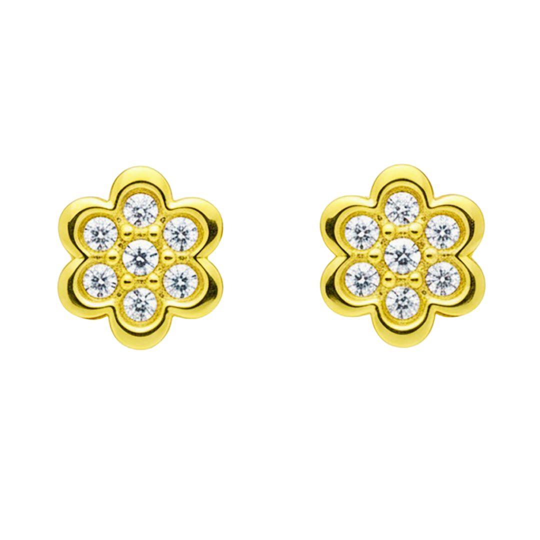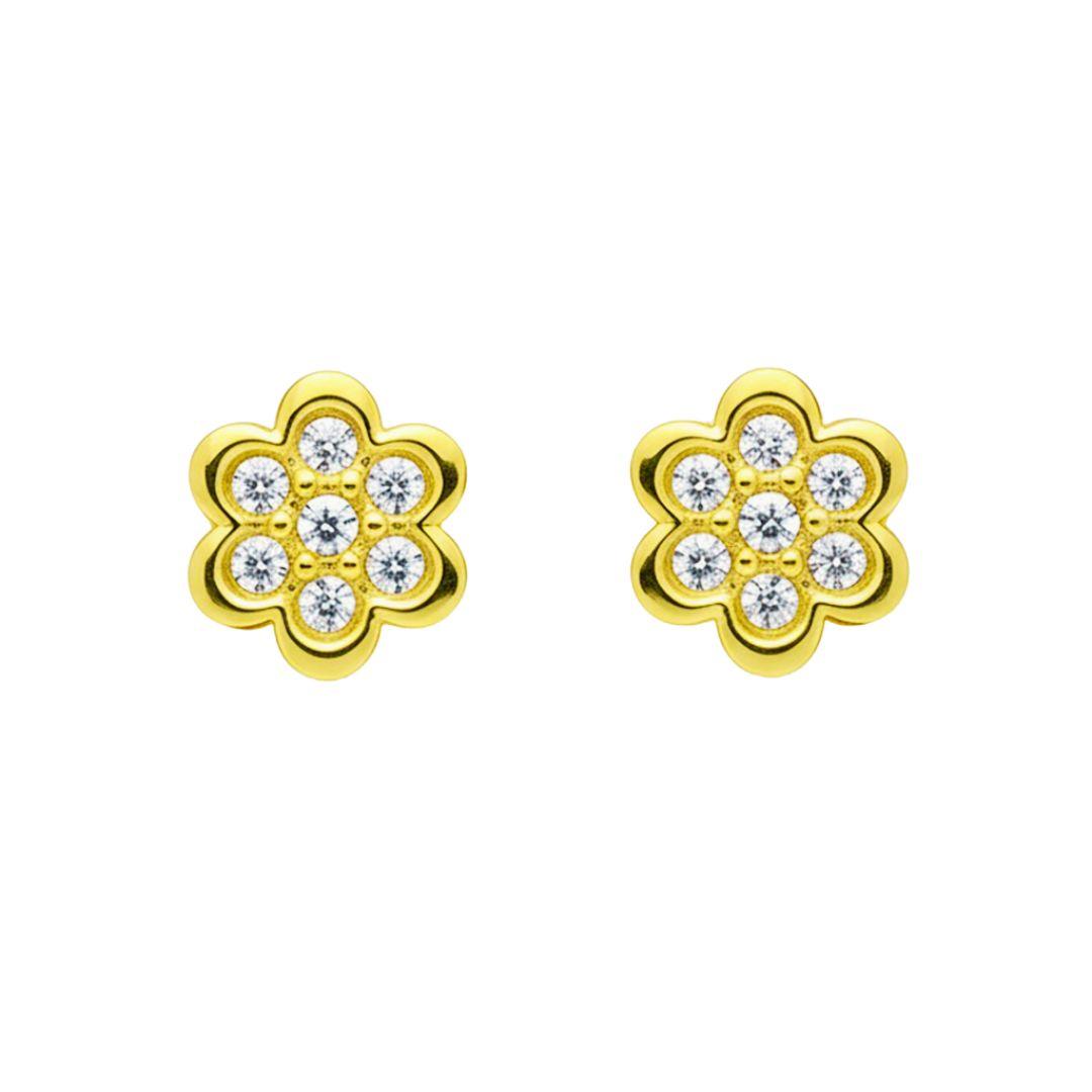 Pendientes Flor Oro 18K con Circonitas Cierre Rosca
