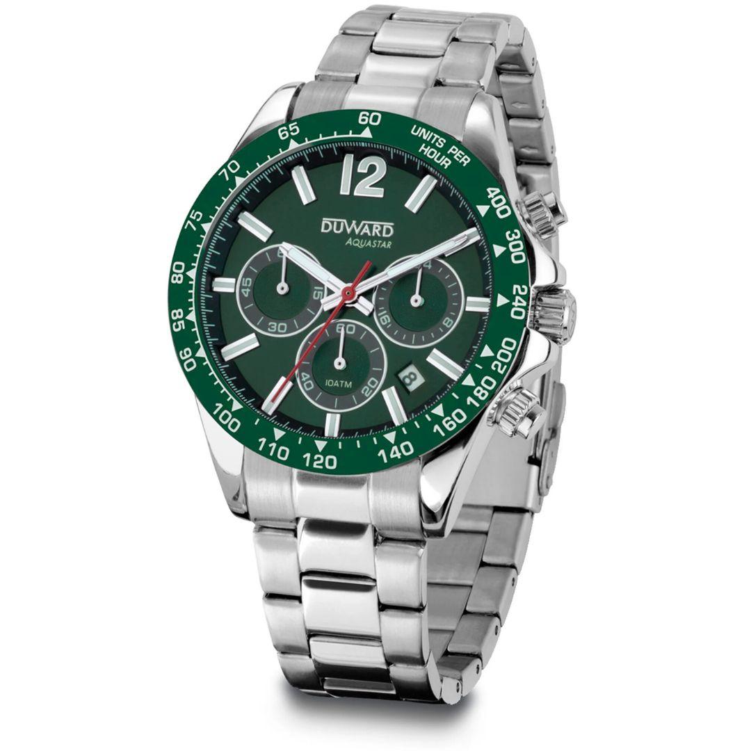 Reloj Duward Aquastar Hombre Acero Bisel Verde Cronógrafo 10 ATM – D95539.03