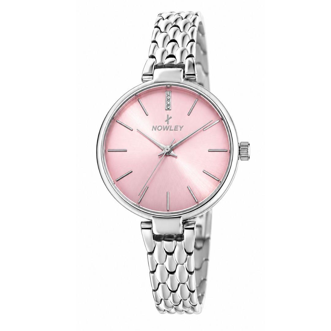 Reloj Nowley mujer colección Chic con diseño moderno en acero inoxidable y esfera rosa suave. Ligero, femenino y perfecto para uso diario.