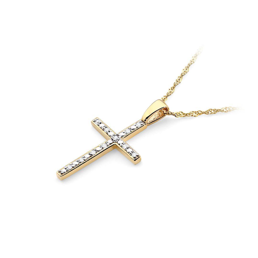 Esta cruz de oro 14K con diamantes naturales destaca por su diseño elegante con detalles brillantes que realzan su estilo clásico. El colgante de oro amarillo 585 es ideal como regalo de comunión, bautizo o celebración religiosa especial. Una joya de oro 14 quilates sofisticada y ligera perfecta para llevar todos los días.