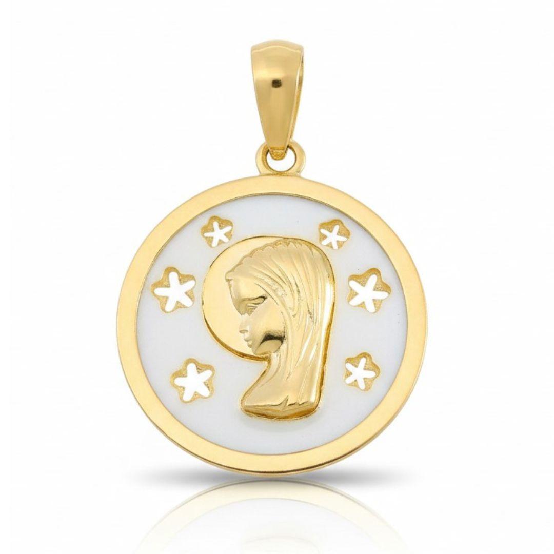 Medalla Virgen Niña en Oro 9K con Nácar Redonda Elegante