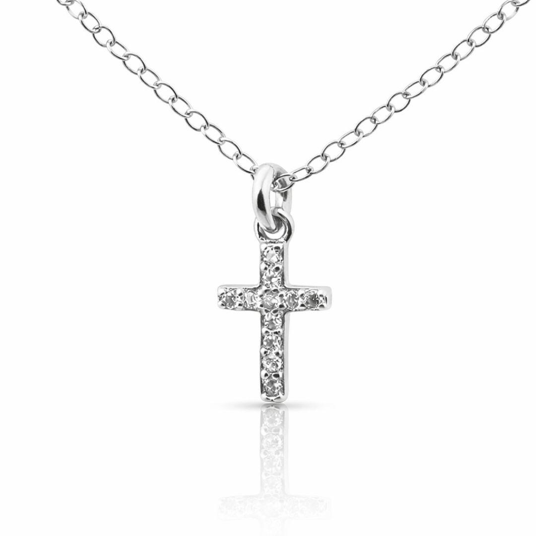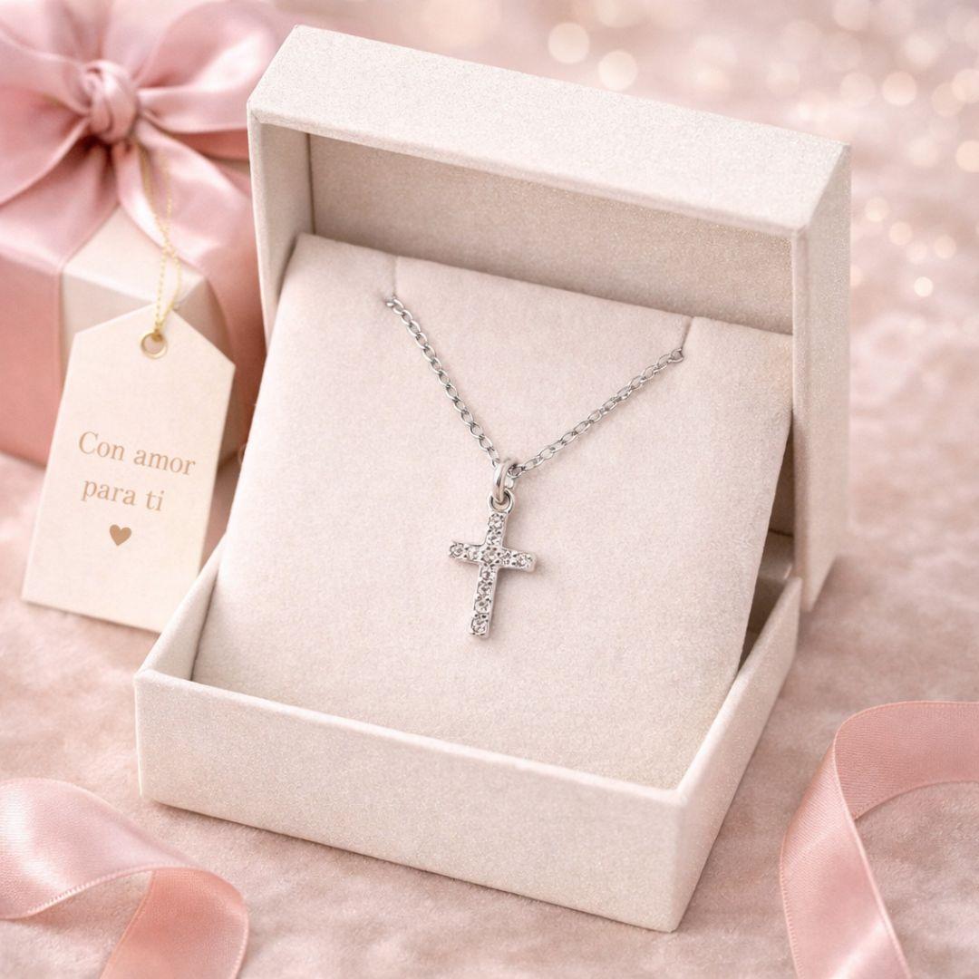 Su diseño de cruz pequeña la convierte en una pieza discreta y versátil, perfecta tanto para niñas como para adultos. La cadena de 42 cm se adapta cómodamente al cuello, ofreciendo un ajuste ideal.