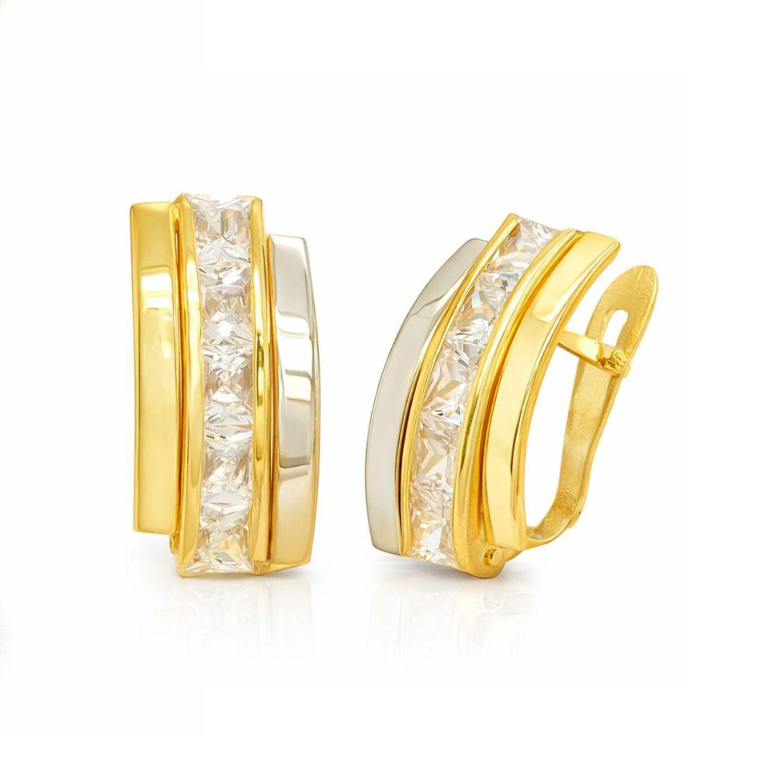 Pendientes Oro 18K Bicolor con Circonitas Elegantes