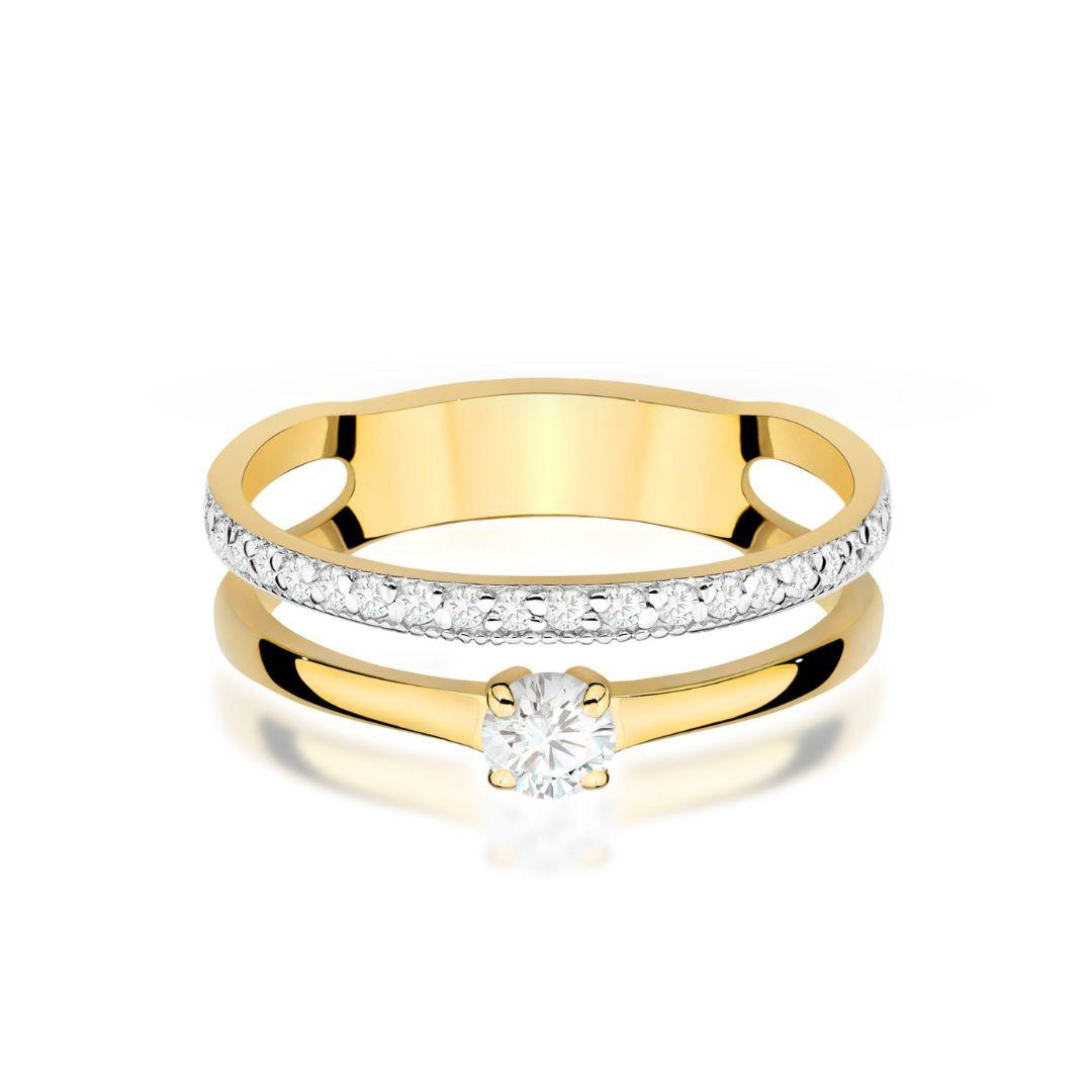 Su diseño moderno con doble aro convierte este anillo de oro amarillo con diamantes en una joya exclusiva ideal como anillo de compromiso, regalo especial o complemento elegante.