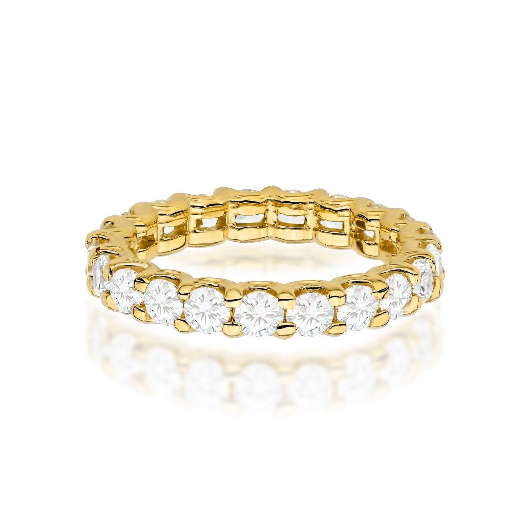 Sus diamantes naturales engastados en todo el aro convierten este anillo de oro amarillo con diamantes en una pieza exclusiva ideal como alianza de boda, anillo de aniversario o joya de alta gama.
