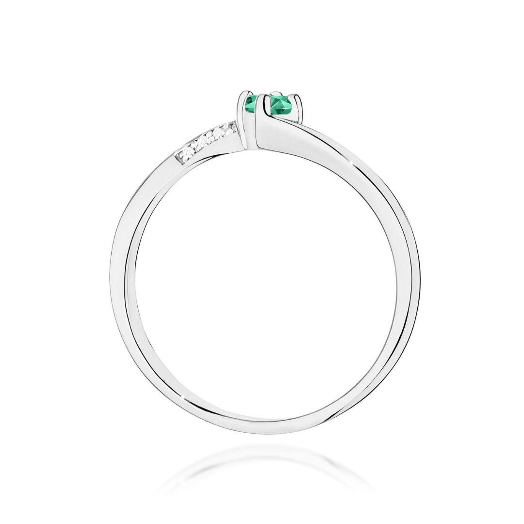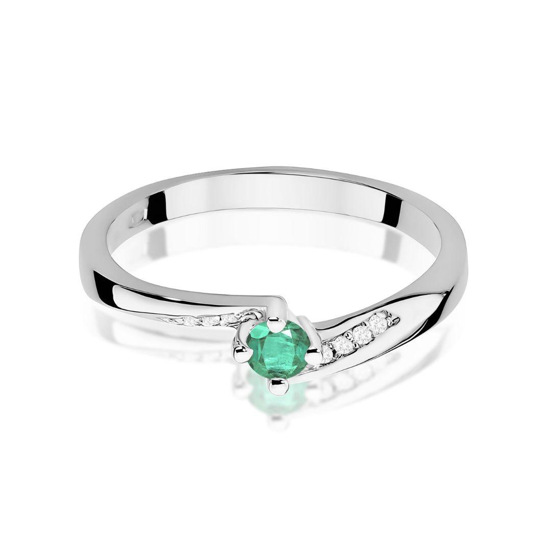 Este anillo de oro blanco 14K con esmeralda de 0,15 ct y diamantes destaca por su diseño fino y sofisticado, perfecto para realzar la belleza natural de la piedra central. Una joya elegante y luminosa ideal para ocasiones especiales o como símbolo único.