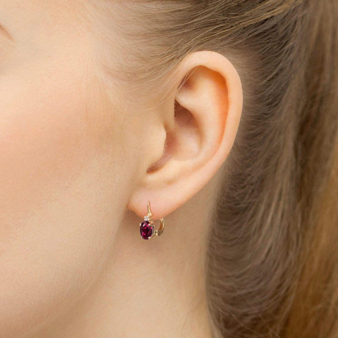 Pendientes Oro Amarillo 14K con Rodolita Oval y Diamantes