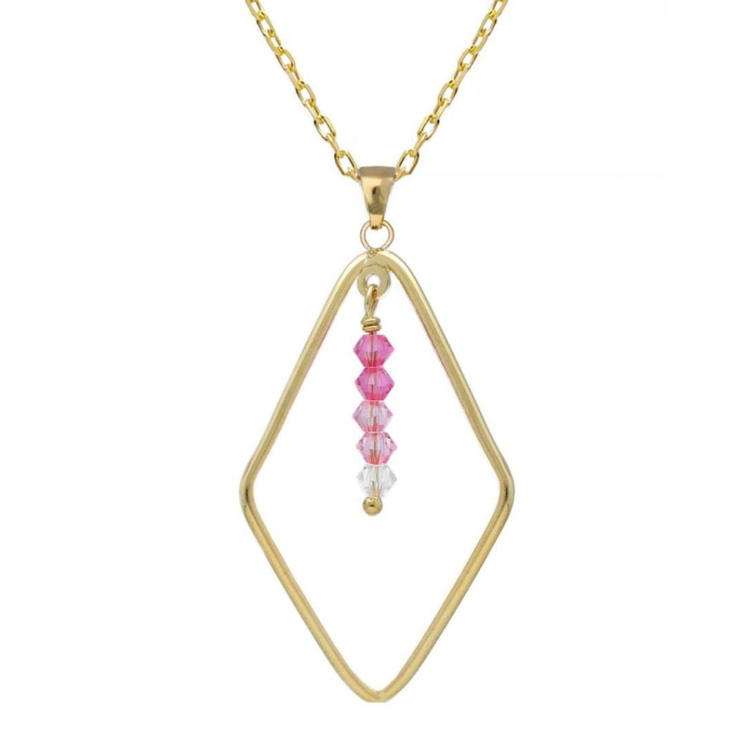 Un collar ligero, sofisticado y lleno de color. El collar Anya combina un colgante en forma de rombo con cristales en tonos fucsia y blanco, creando una pieza moderna y muy luminosa. Perfecto para dar un toque estilizado a cualquier look.