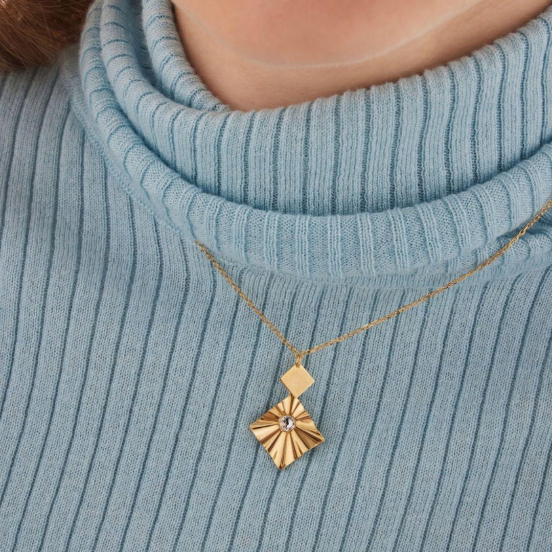 Collar rombo en Plata 925 bañada en Oro 18 kt con cristal brillante. Diseño moderno, elegante y luminoso, perfecto para elevar cualquier look.
