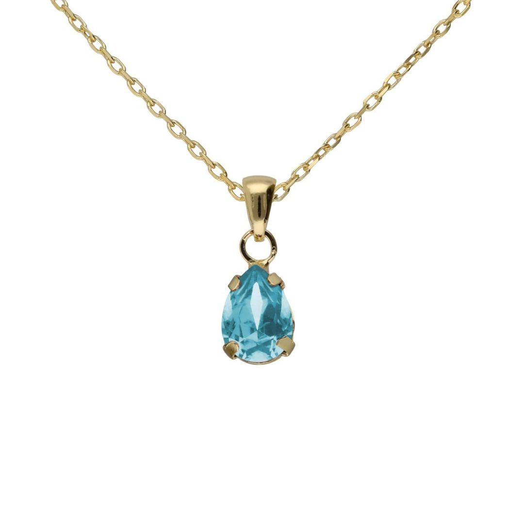 Collar lágrima en Plata 925 bañada en Oro 18 kt con cristal Birthstone en dos versiones: Rose o Aquamarine. Delicado, moderno y luminoso, acompañado con caja de regalo.
