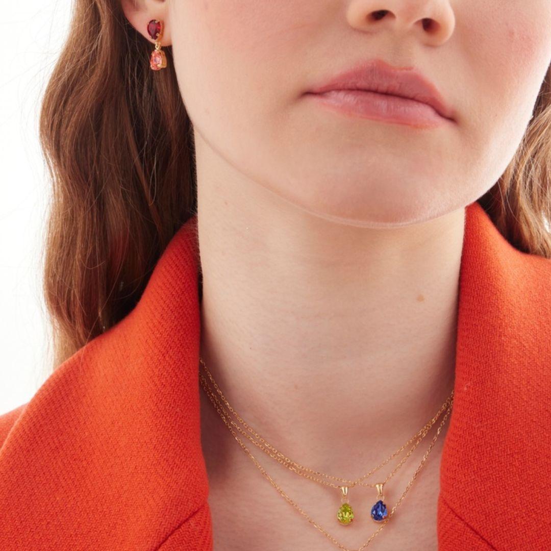 El Collar Birthstone Lágrima es una pieza delicada y elegante, perfecta para llevar a diario o para regalar. Fabricado en Plata de Ley 925 con un suave baño de Oro de 18 kt, destaca por su diseño minimalista y su brillo lleno de luz.