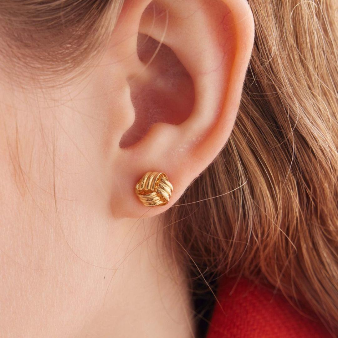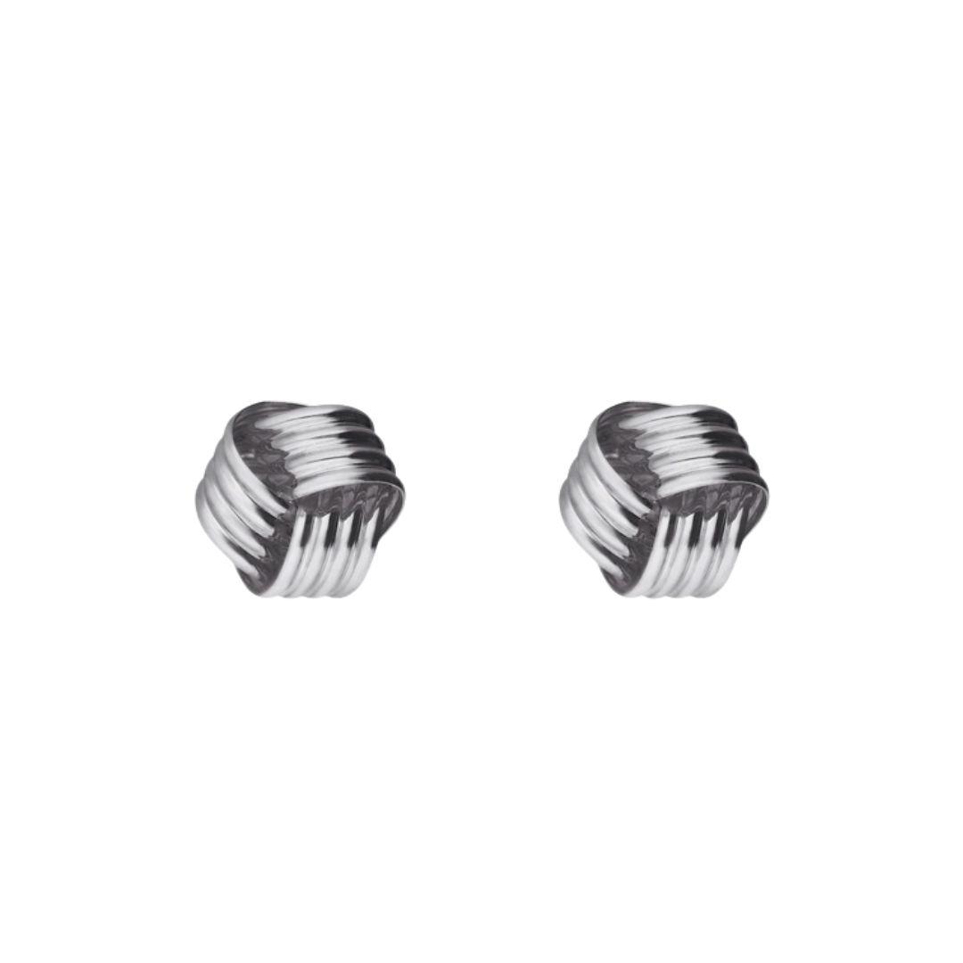 Pendientes de botón en Plata 925 con diseño de nudo pequeño. Elegantes, modernos y perfectos para el día a día, acompañados con caja de regalo.