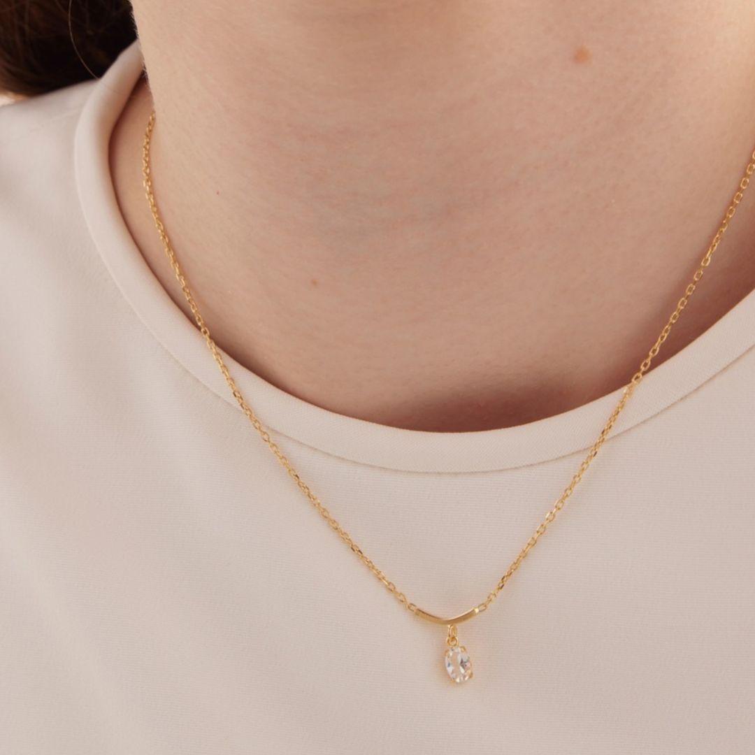 Collar Lieve oval con cristal blanco en Plata 925 baño Oro 18kt – Victoria Cruz
