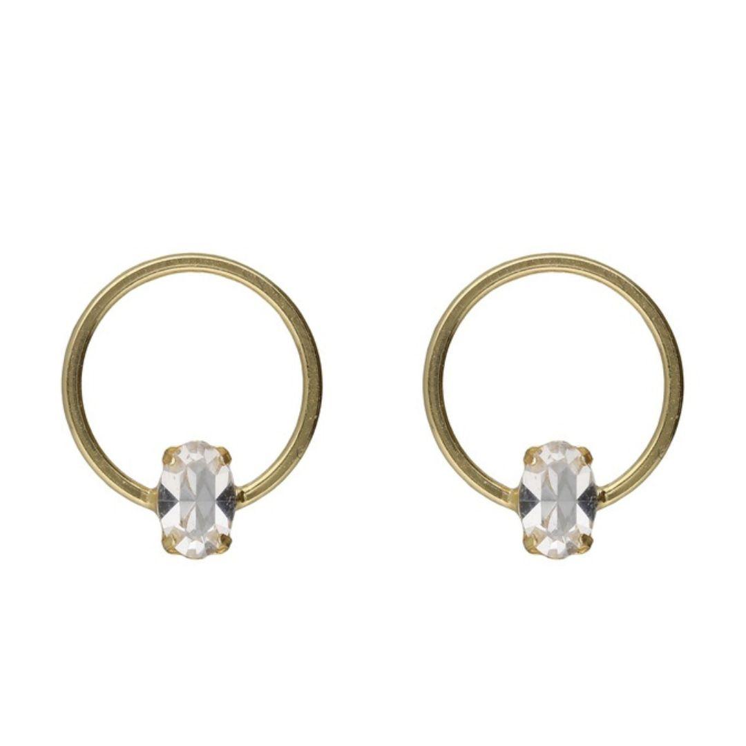 Pendientes Lieve oval & círculo con cristal blanco en Plata 925 baño Oro 18kt – Victoria Cruz