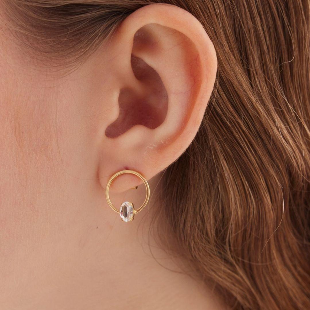 Pendientes oval & círculo en Plata 925 baño Oro 18 kt con cristal blanco. Delicados, modernos y luminosos. Acompañados con caja de regalo.