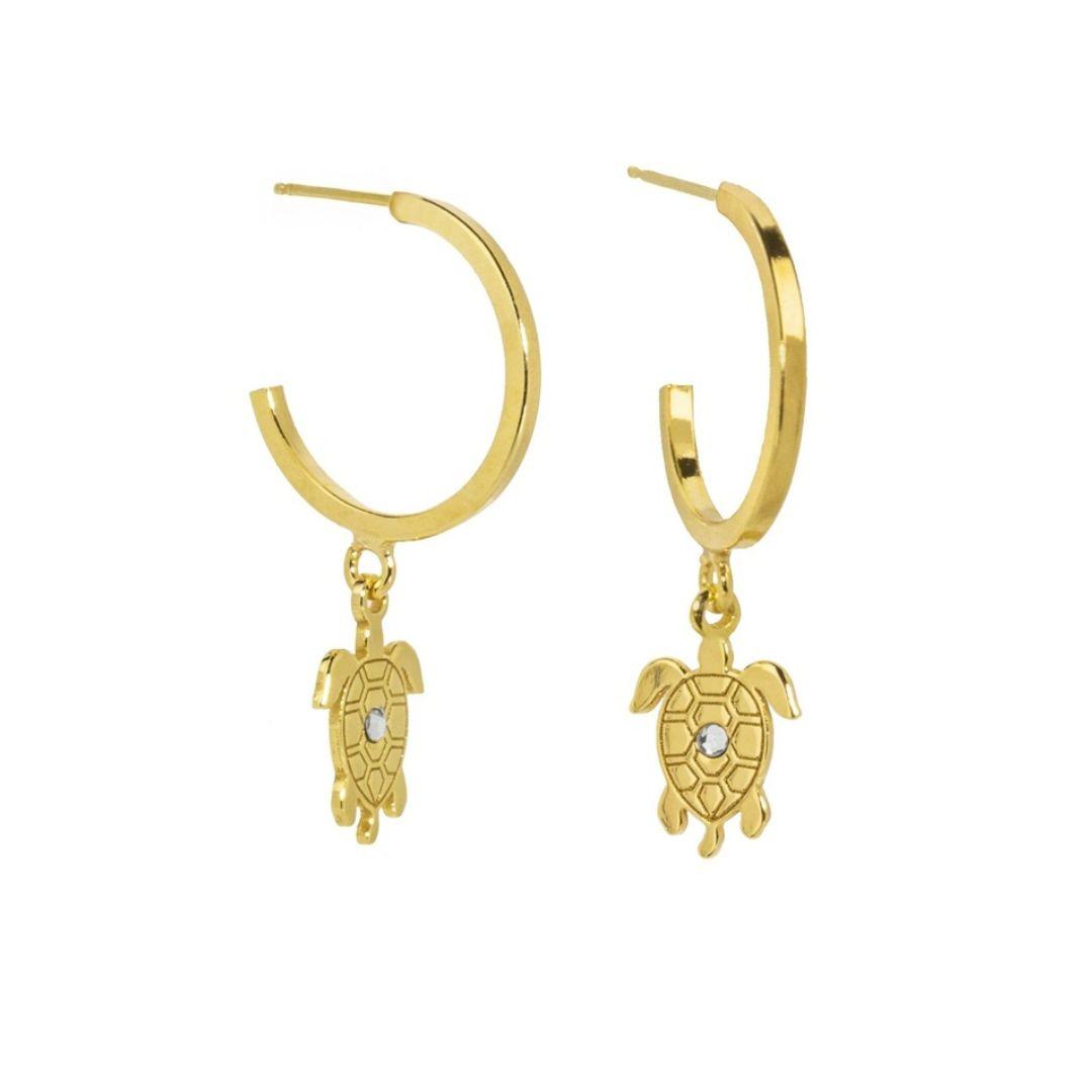 Dulces, modernos y llenos de simbolismo. Los Pendientes Cocolada Tortuga combinan brillo y encanto en un diseño ligero con aro dorado y colgante de tortuga con cristal blanco.