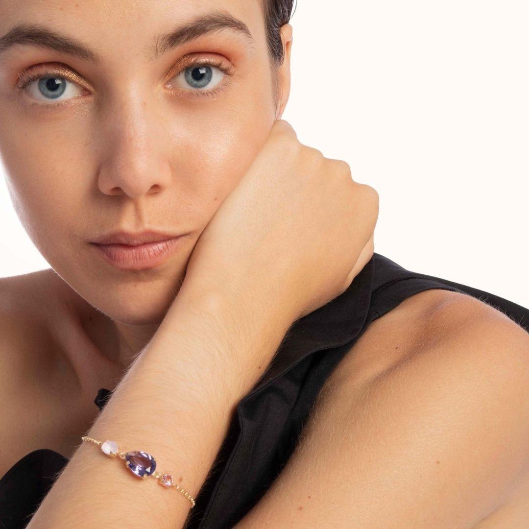 Pulsera Blooming Tear en Plata bañada en Oro 18K con Cristal Morado – Victoria Cruz