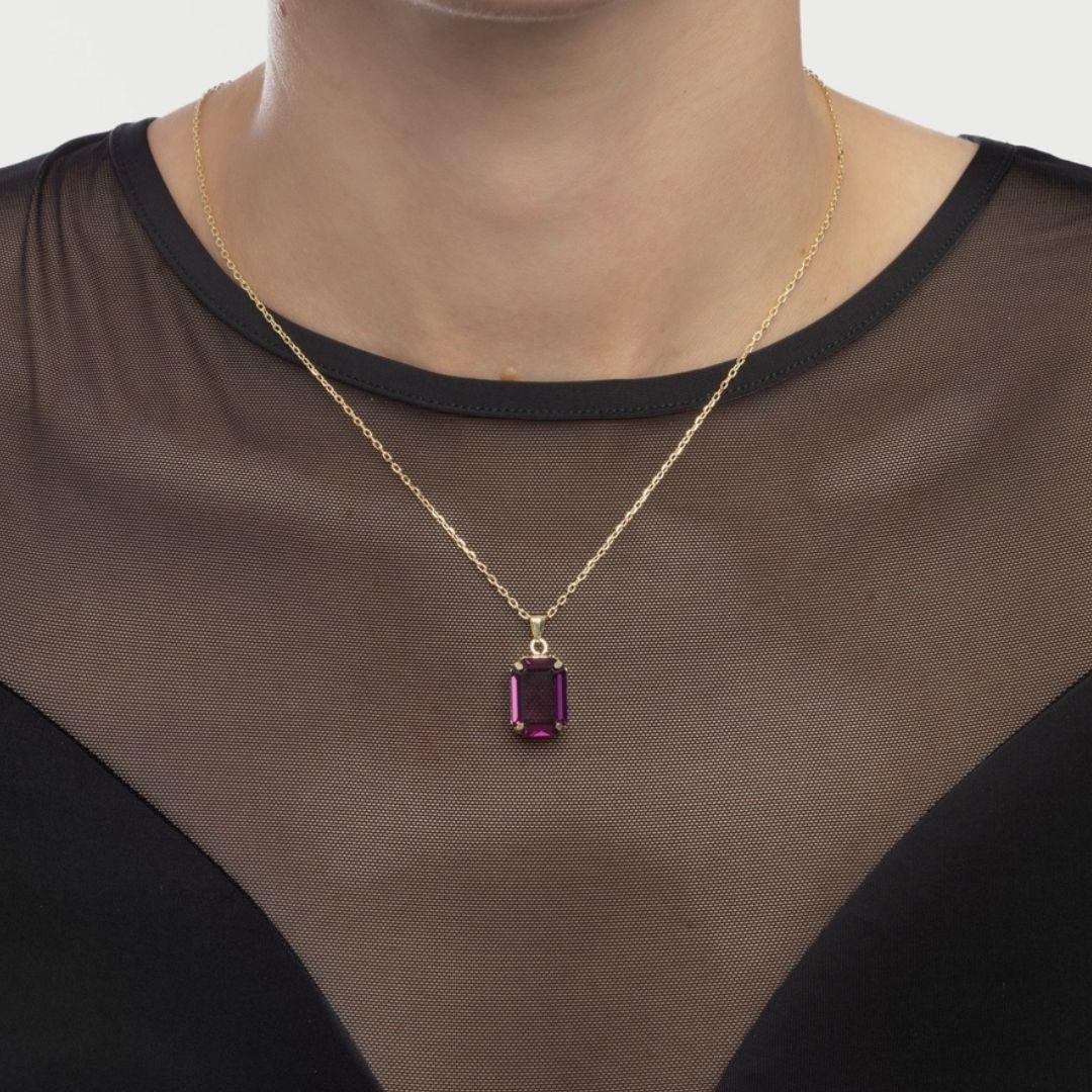 El Collar Helena Rectángulo Amethyst es una joya diseñada para quienes buscan una pieza clásica con un toque contemporáneo. Realizado en Plata de Ley 925 y bañado en Oro 18K, combina una cadena fina con un colgante rectangular de 1,4 × 1 cm, protagonizado por un cristal Amethyst de tono morado profundo y un brillo cautivador.