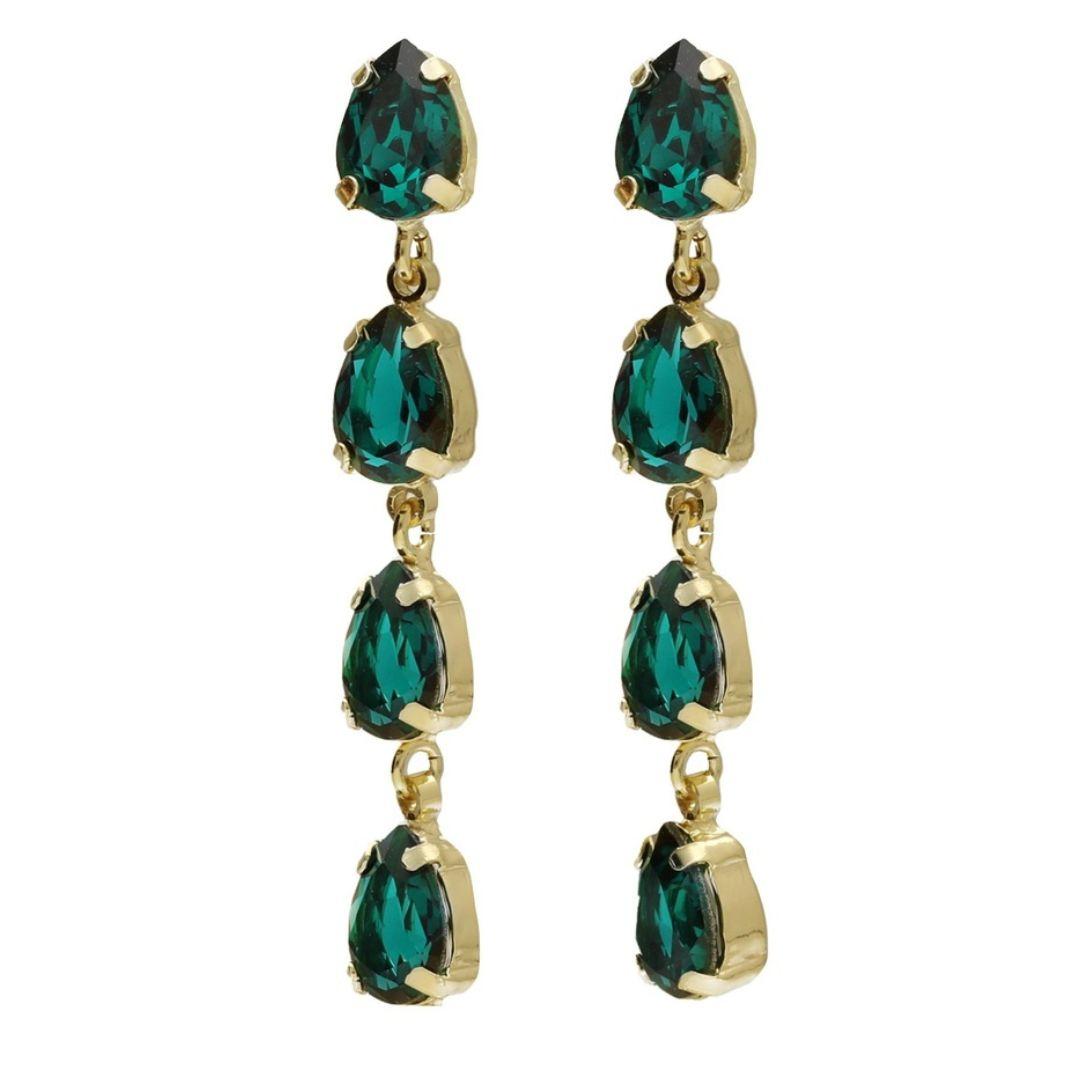 Los Pendientes Diana Green destacan por su diseño en cascada con cristales lágrima verdes, aportando un brillo sofisticado y un estilo moderno irresistible.
