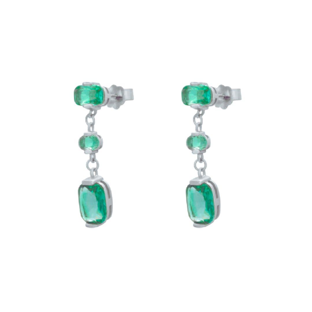 Pendientes largos y delicados de plata de ley 925 con piedras verdes que aportan luz, frescura y un toque elegante a cualquier look.