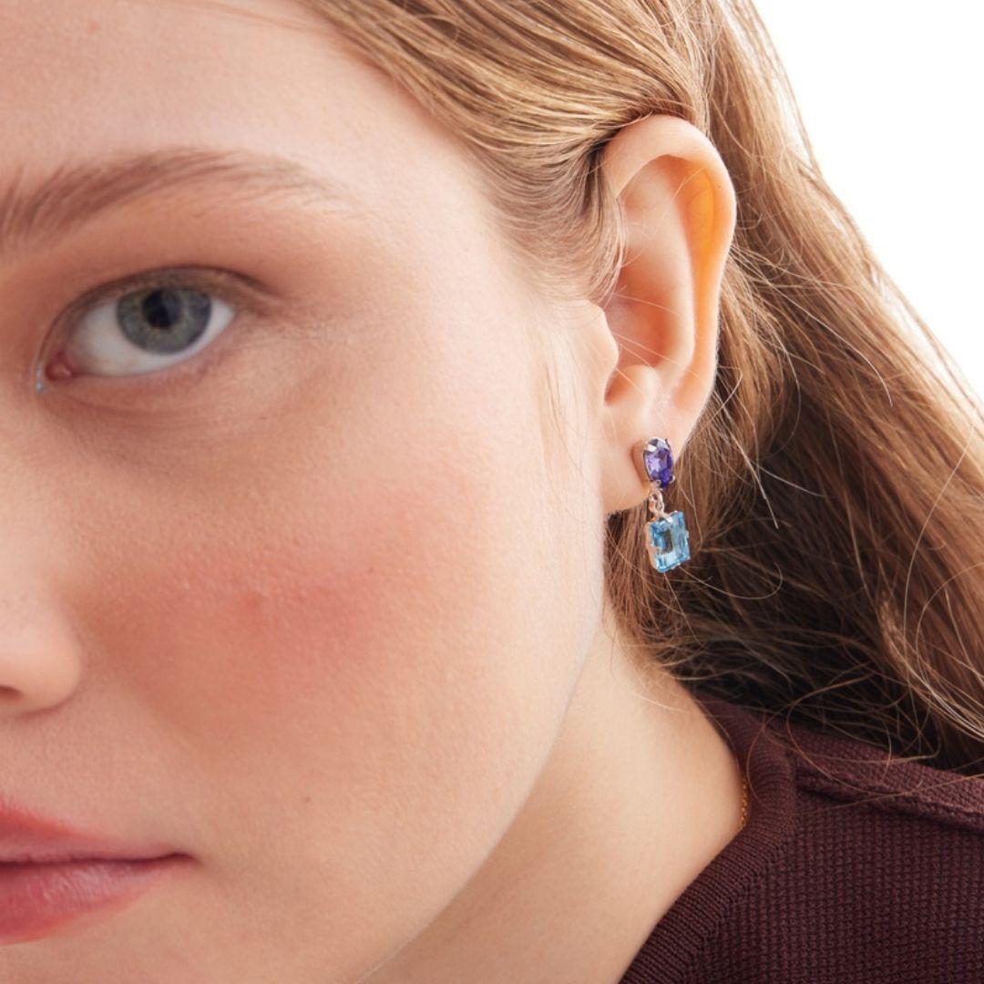 PENDIENTES CORTOS BOREA CON CRISTAL AZUL Y MORADO EN PLATA DE LEY BAÑADA EN RODIO · VICTORIA CRUZ